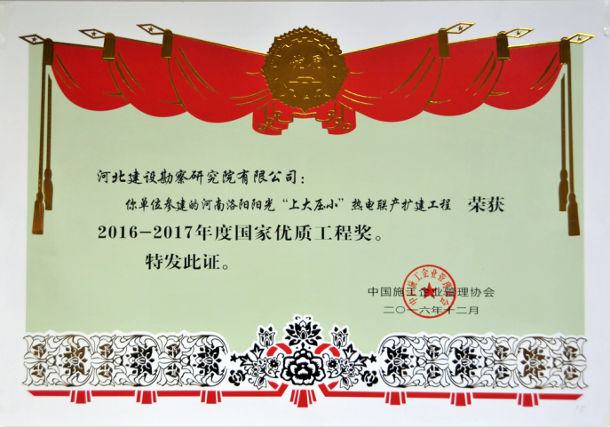 近日,由中國(guó)施工企業(yè)管理協(xié)會(huì)組織的2016-2017年度第一批國(guó)家優(yōu)質(zhì)工程獎(jiǎng)評(píng)審會(huì)在北京隆重召開。國(guó)家工程建設(shè)質(zhì)量獎(jiǎng)評(píng)審組聽(tīng)取了2016-2017年度第一批國(guó)家優(yōu)質(zhì)工程獎(jiǎng)評(píng)審工作報(bào)告和專家組長(zhǎng)對(duì)參評(píng)項(xiàng)目復(fù)查情況的匯報(bào),對(duì)參評(píng)項(xiàng)目進(jìn)行了綜合評(píng)議、質(zhì)詢答辯和記名投票,確定了2016-2017年度第一批國(guó)家優(yōu)質(zhì)工程獎(jiǎng)候選項(xiàng)目。我公司參建的新疆華電喀什熱電有限責(zé)任公司的2X350MW熱電聯(lián)產(chǎn)工程、河南洛陽(yáng)陽(yáng)光“上大壓小”熱電聯(lián)產(chǎn)熱電工程最終通過(guò)評(píng)審榮獲了國(guó)家優(yōu)質(zhì)工程獎(jiǎng)。