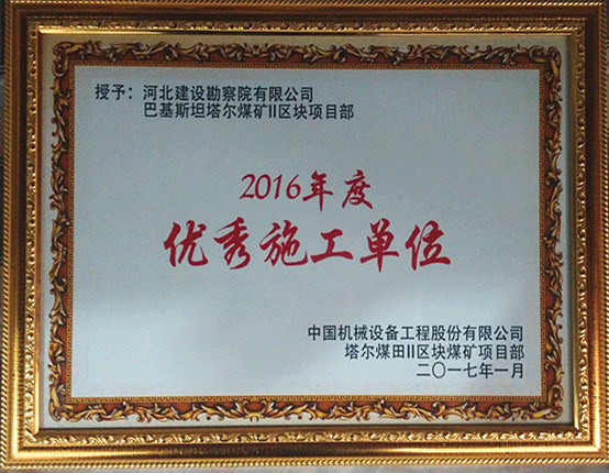 1月19日,巴基斯坦塔爾煤礦總承包方CMEC舉行2016年度優(yōu)秀集體及先進(jìn)個(gè)人表彰大會(huì),我公司疏干井項(xiàng)目部榮獲CMEC煤礦優(yōu)秀施工項(xiàng)目部稱(chēng)號(hào),鄭聚印等三人及一名巴籍員工獲得優(yōu)秀先進(jìn)個(gè)人稱(chēng)號(hào)。CMEC塔爾煤礦項(xiàng)目總經(jīng)理高度贊揚(yáng)了我公司不畏艱辛,排除萬(wàn)難,按期完成疏干井施工工作,給下一步煤礦投產(chǎn)奠定了基礎(chǔ)。同時(shí),希望我公司繼續(xù)發(fā)揚(yáng)苦干快干的精神,如期完成疏干井排水管道的施工任務(wù)。