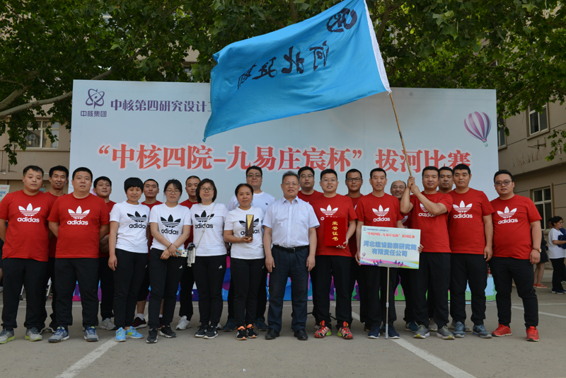 2019年5月31日,為慶祝建國七十周年,充分展現(xiàn)勘察設(shè)計行業(yè)建設(shè)成就和行業(yè)風采,由石家莊市工程勘察咨詢業(yè)協(xié)會主辦、中核第四研究院設(shè)計工程有限公司和河北九易莊宸科技股份有限公司承辦的“中核四院-九易莊宸杯”拔河比賽,在中核第四研究設(shè)計工程有限公司院內(nèi)正式拉開帷幕。我公司總經(jīng)理李華偉參加了開幕式并作了熱情洋溢的講話。