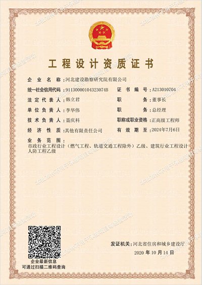 公司于2020年10月27日取得了建筑行業(yè)(人防工程)工程設(shè)計乙級資質(zhì)證書,可承擔(1)建設(shè)規(guī)模在1000萬元以下的各級人防工程設(shè)計項目;(2)建設(shè)規(guī)模在2000萬元以下的醫(yī)療救護工程、防空專業(yè)隊工程、人員掩蔽工程、人防配套工程設(shè)計項目。