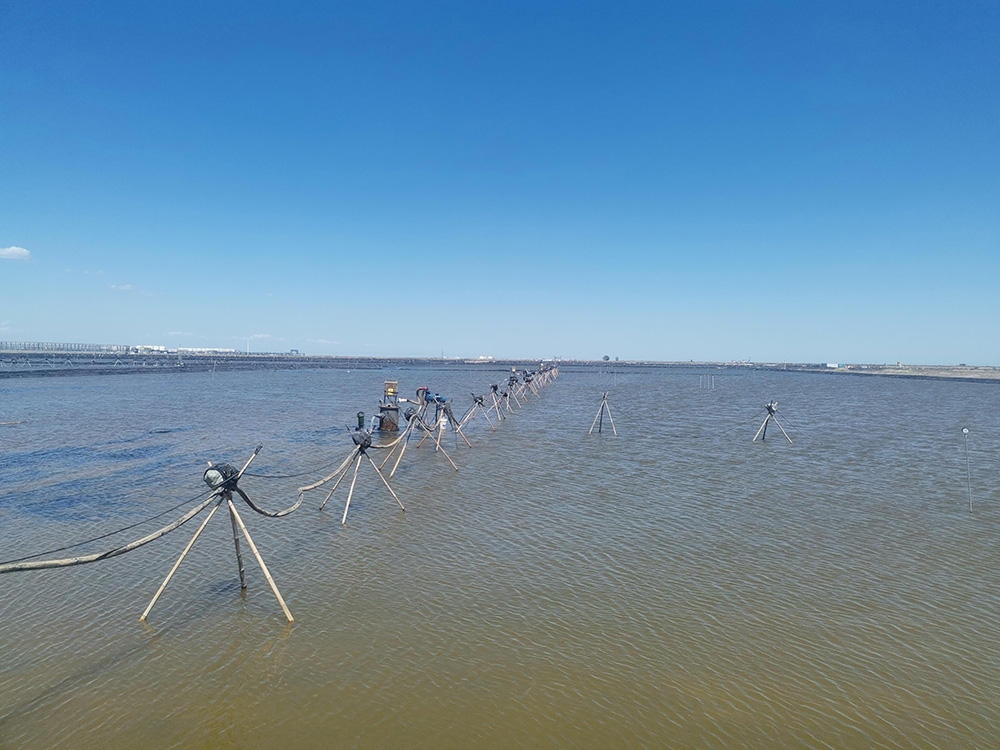 本工程于2021年03月26日開工,08月23日完工。完成鋪砂墊層約130000m³,施打塑料排水板約6620000米,密封墻-黏土攪拌樁約17600立方米等。 完工后進行第三方檢測,于 2021年09月12日順利交工驗收。