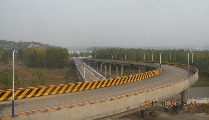 國電霍州發(fā)電廠跨汾河公路大橋東接國道108線(霍侯一級公路),西連電廠運煤公路,東接口處南有霍州礦務(wù)局木材加工廠,北有個體汽車修理廠,居民較少。向西跨越汾河進入電廠廠區(qū)后要上跨電廠主要出入道路。橋梁分左、右幅:左幅主要承擔電廠職工的生產(chǎn)、生活用車通行;右幅主要承擔電廠運煤、運渣等車輛通行。終點要與國道108線(霍侯一級公路)相連接,接點位置位于國道108線K826+160處。