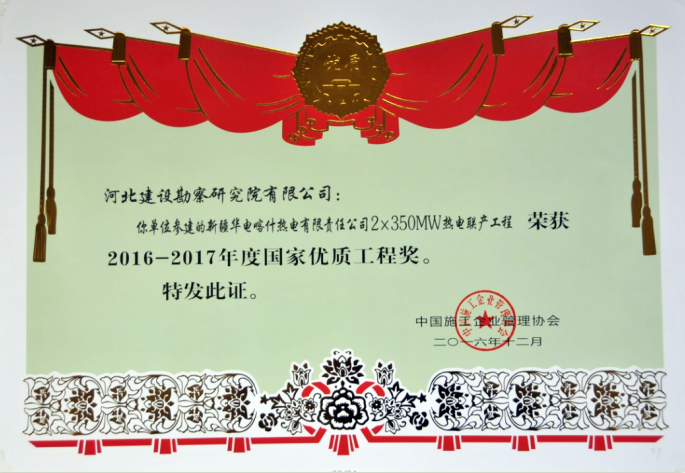 喀什熱電項(xiàng)目、洛陽(yáng)陽(yáng)光熱電項(xiàng)目榮獲2016-2017年度國(guó)家優(yōu)質(zhì)工程獎(jiǎng)