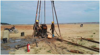 根據工程要求、地層特點及擬采用的基礎形式,勘察手段采用了鉆探、標準貫入試驗、波速測試和電阻率測試,關鍵環節照片詳見圖2-圖6。土工試驗項目包括含水量試驗、界限含水量試驗、比重試驗、基巖飽和單軸抗壓強度試驗、巖塊密度試驗、巖塊波速測試等。