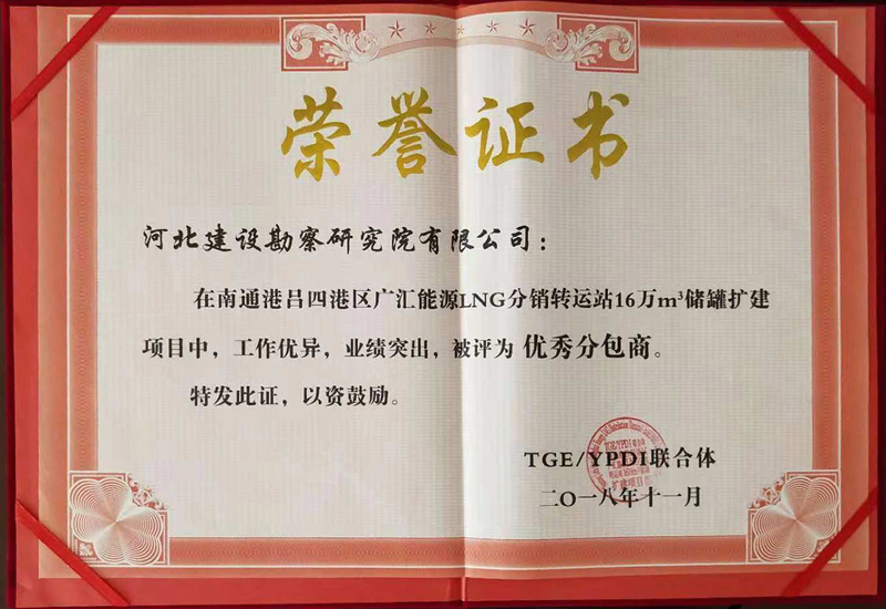 我公司獲廣匯能源LNG項目“優秀承包商”證書