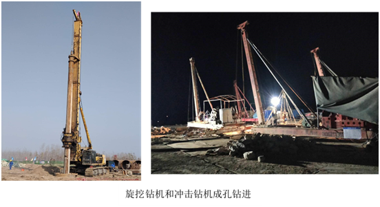 本工程主要包括從黃河左岸大堤位置起,大橋主橋17#、18#和19#墩三個(gè)墩的樁基工程,主要工作內(nèi)容為:成孔、水下混凝土灌注和配合樁基檢測(cè)。自2018年11月22日開(kāi)工,2019年5月19日全面竣工,共計(jì)179天,投入旋挖鉆機(jī)TR360D 1臺(tái),沖擊鉆機(jī)6臺(tái),空壓機(jī)1臺(tái),泥漿處理器1臺(tái)。施工完成后,經(jīng)相關(guān)單位檢測(cè)和驗(yàn):本工程鉆孔成孔深度、成孔直徑符合設(shè)計(jì)要求;入巖深度和巖石強(qiáng)度符合設(shè)計(jì)要求;樁基超聲波檢測(cè)合格率100%,優(yōu)良率100%。
