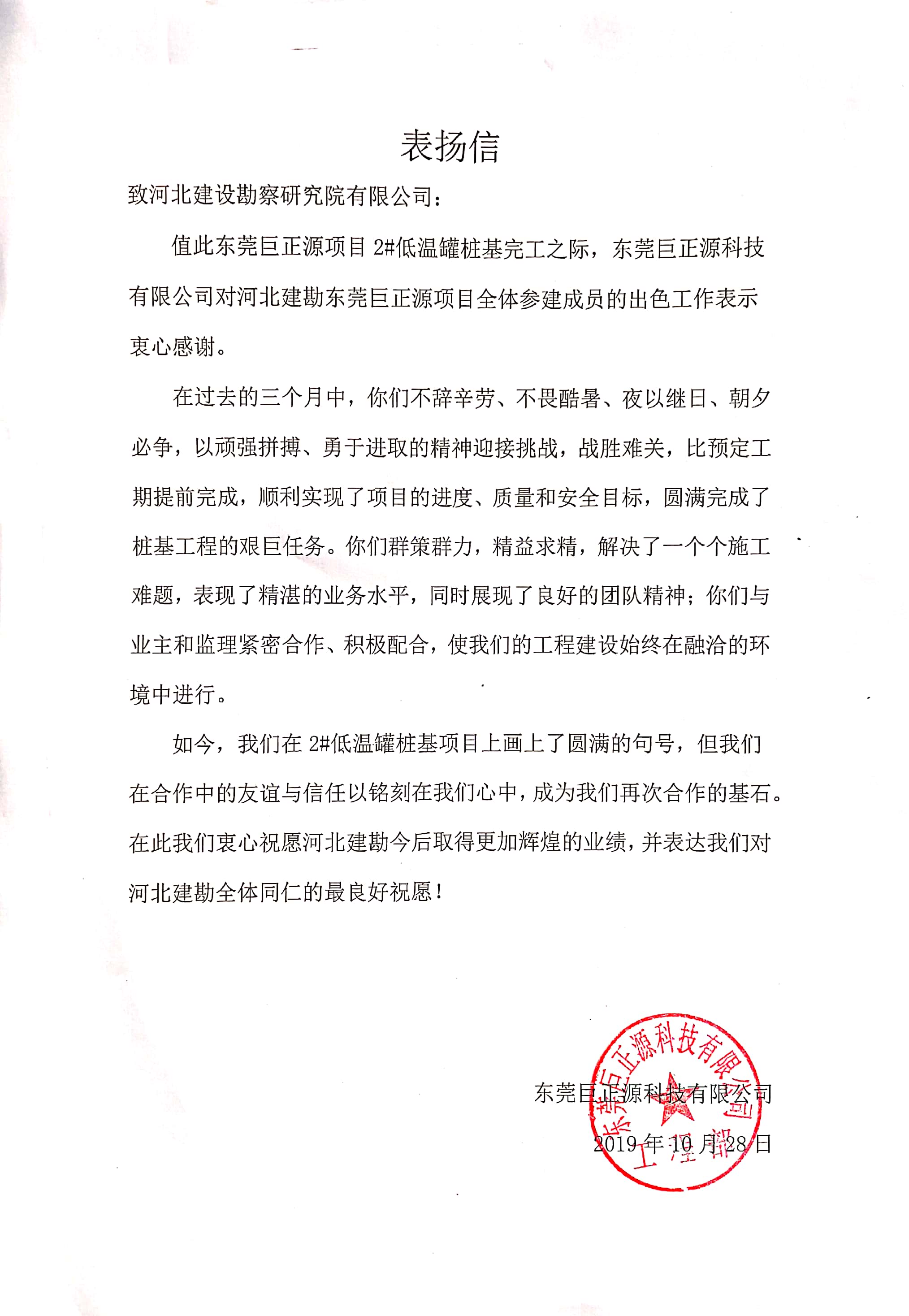 我公司承建的東莞巨正源120萬噸/年丙烷脫氫制高性能聚丙烯項目一期2#低溫丙烷儲罐樁基及短柱工程,在施工過程中全體員工不畏酷暑,夜以繼日,戰勝難關,保證了工程安全和質量,得到了業主和監理的一致好評,已圓滿完成各項施工任務,順利完工。