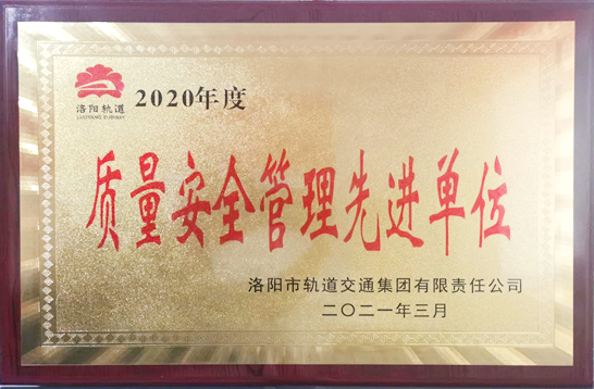近日,由我公司承接的洛陽(yáng)市軌道交通2號(hào)線第三方監(jiān)測(cè)項(xiàng)目榮獲由洛陽(yáng)市軌道交通集團(tuán)有限責(zé)任公司授予的“質(zhì)量安全管理先進(jìn)單位”的榮譽(yù)獎(jiǎng)牌。