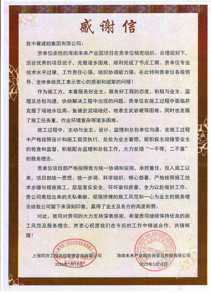 近期,公司連續收到業主及總包方發來的表揚信及榮譽稱號,對我公司所承擔的多個工程項目的生產組織、質量管控、安全文明施工等給予了充分肯定。