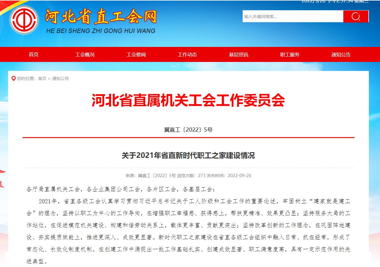 我公司自2013年榮獲“全國模范職工之家”以來,始終按照新時代“建家”標準,不斷提升職工的生產生活條件;堅持廠務公開,維護職工民主權益;組織召開職工代表大會,保障職工參與民主管理的權利;開展集體合同協商,構建和諧穩定的勞動關系;組織并積極參與上級工會開展的文體活動,豐富職工的業余文化生活;開展“小改小革”等技能競賽活動,激發一線職工創新活力;為困難職工提供救助及幫扶等。按照冀直工〔2022〕5號《關于2021年省直新時代職工之家建設情況》通報,我公司工會繼續保持“省直新時代職工之家(小家)表現突出單位”榮譽稱號,獲得“建家”專項經費補助17萬元。
