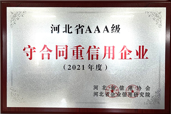 公司獲得“河北省誠信共建企業(yè)”、“2021年度河北省AAA級守合同重信用企業(yè)”榮譽
