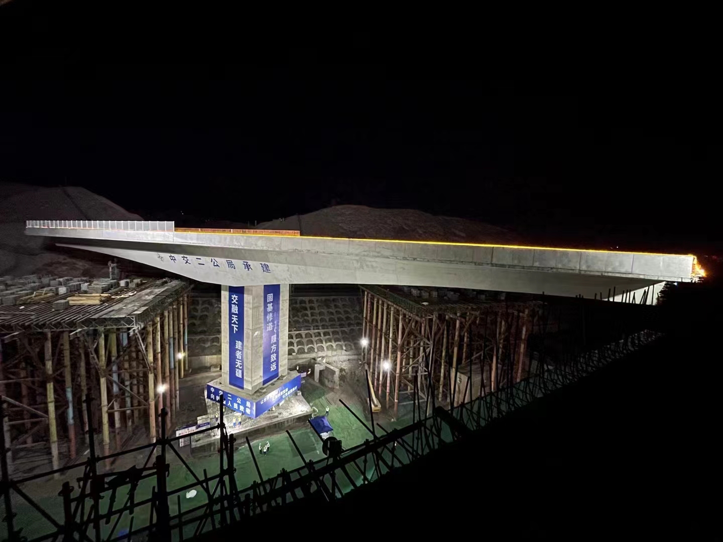 烏魯木齊市東二環(huán)項(xiàng)目燕北高架橋,上跨蘭新鐵路,橋面寬度32.5米,跨度70米,雙向八車道城市快速路,是新疆噸位最大、跨徑最大的轉(zhuǎn)體橋,轉(zhuǎn)體段總重16500噸。主橋梁采用鋼立柱+貝雷梁+承插型盤扣式鋼管腳手架等組合架體現(xiàn)澆施工,架體高度36米,耗用鋼材4000多噸,現(xiàn)澆完成后形成兩個(gè)長55米的T形構(gòu)架,然后轉(zhuǎn)體77°合攏,跨度為70米,是項(xiàng)目全線重難點(diǎn)控制性工程,同時(shí)也是目前新疆地區(qū)最大的市政工程轉(zhuǎn)體橋梁。