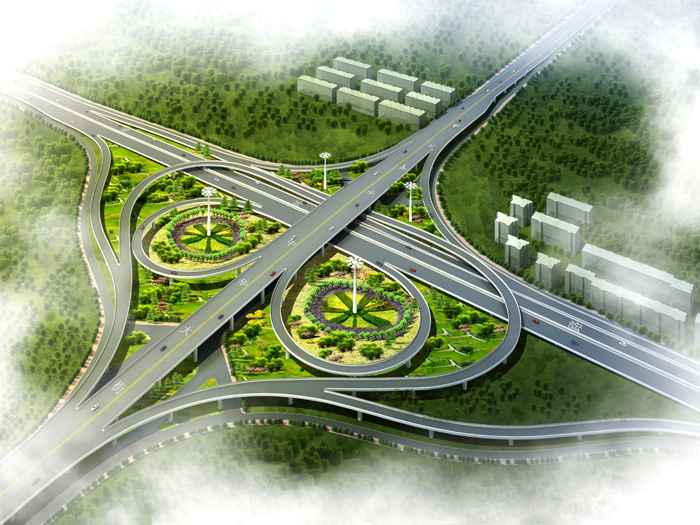 邯鄲市中華大街~南環路全互通立交橋,設計為車速60km/h,雙向八車道全互通組合式三層立交,其中南環路為第二層,上跨地面層,凈空3.5米,中華大街為第三層, 上跨南環路,凈空4.5米。右轉匝道和左轉半定向匝道設計車速40km/h,右轉匝道凈寬7米,左轉半定向匝道凈寬8米,環形匝道設計車速30km/h,凈寬7米。整座立交橋占地322畝,屬特大型城市橋梁工程,預計投資約2.49億元。