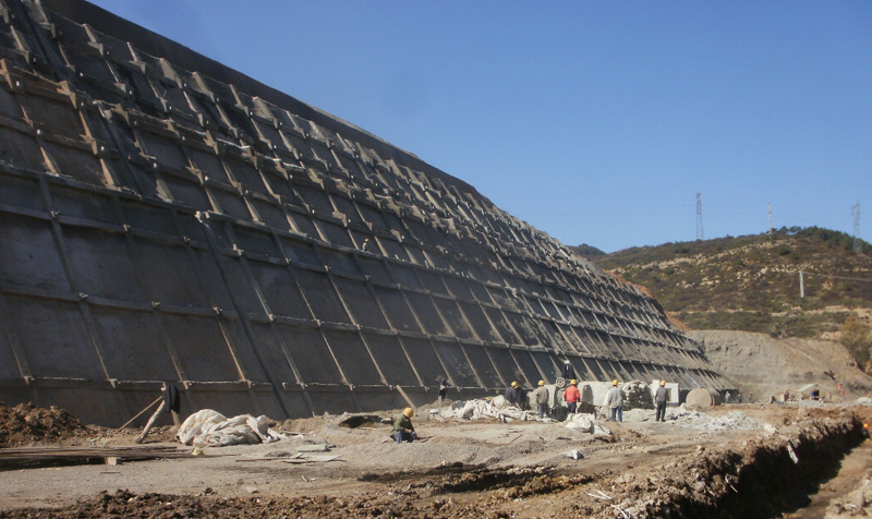 我公司承擔廠外煤場挖方區邊坡工程A區段,總長195m,最高點35m,形狀修整為4個馬道、5個坡面。工程內容分3部分:①支護工程;②護坡工程;③排水工程,三部分共同組成邊坡治理系統工程。